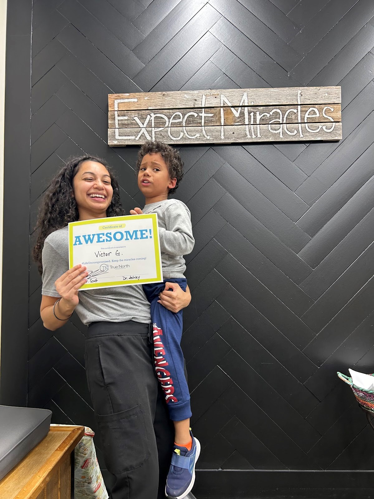 With consistent chiropractic care, Viktor’s challenges with dys-regulation are lessened. We are able to keep Viktor on the brake pedal (parasympathetic state) for longer periods of time allowing him room to grow and develop in multiple aspects!